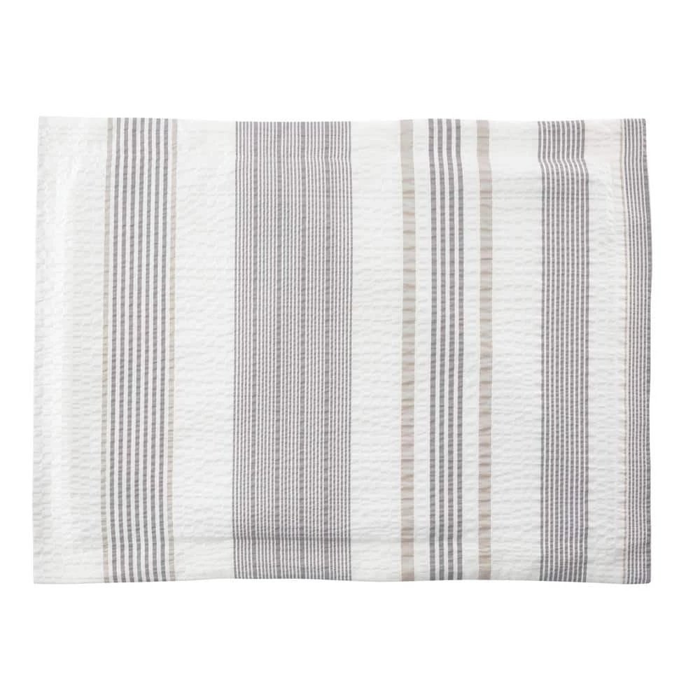 - Classic gray neutral stripes featured on the front, while it reverses to solid white on the back for a versatile look