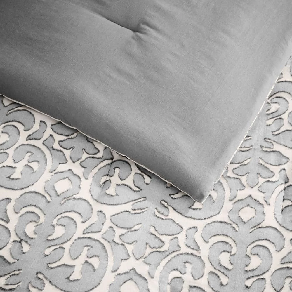 Add a light touch of texture to your bed with the Home Decorators Collection Averly 3-Piece Gray Clipped Jacquard Comforter Set. Crafted from 100% cotton for cozy comfort, this geometric design with clipped ends brings soft texture and dimension to the bedding set. Two standard pillow shams and an ample comforter make it easy to set up your guest room or master bed, and the machine washable construction is effortless to maintain.