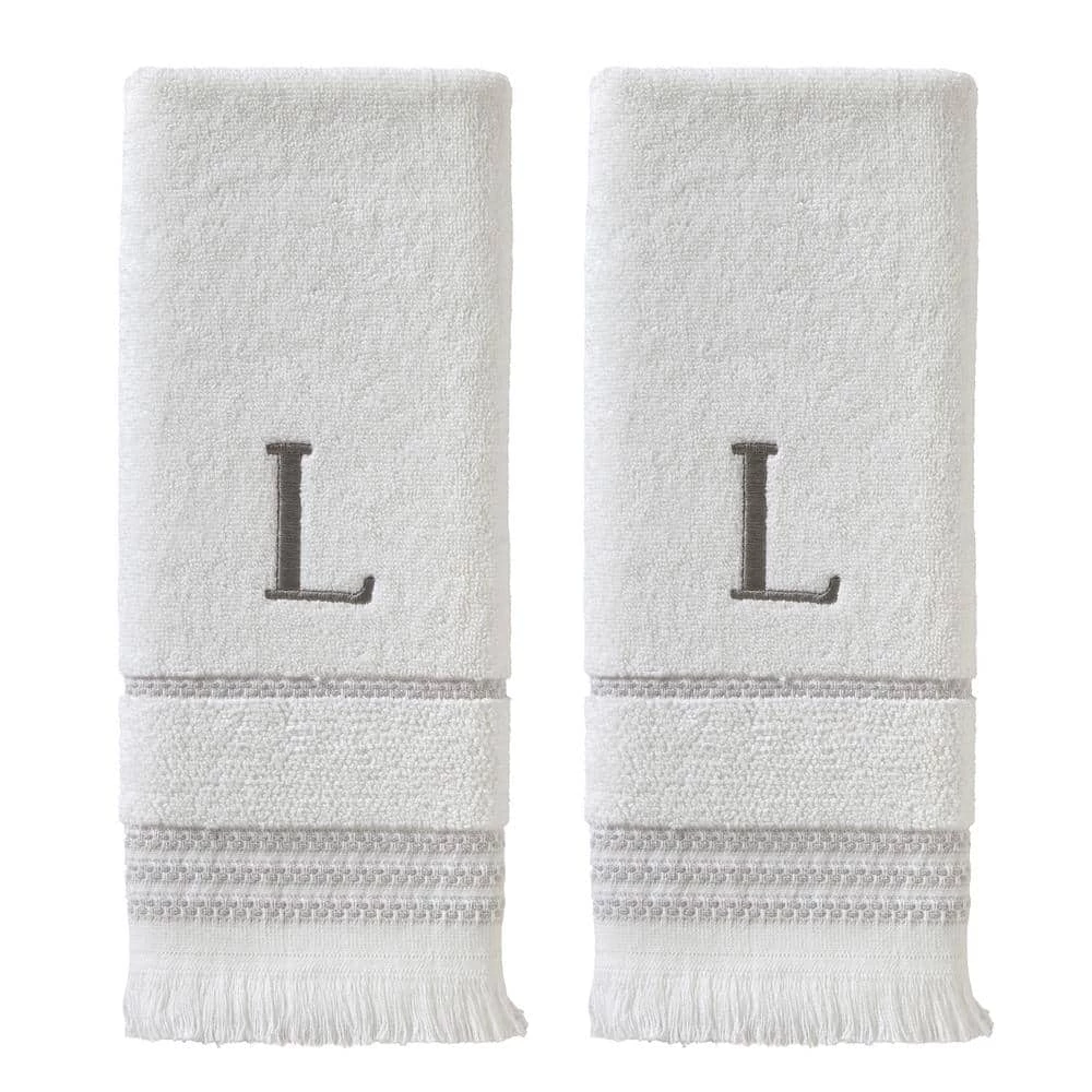 Add some personalization to your daily routine with the Casual Monogram towel collection. This everyday hand towel set is made of soft and absorbent cotton terry. They feature a single embroidered letter in gray, gray striped trim, a textured terry band, and self-fringe along the hem. This set makes a great gift for a wedding/shower, for a new homeowner, or anyone looking for a personalized touch for their space. Coordinating bath towel sold separately. SKL Home brings personality, fun and flair to the most intimate spaces in your home with products ranging from bath accessories and shower curtains, to towels, curtains and beyond. Whether your style is upbeat and modern, or classic and cozy, SKL Home provides a look to compliment almost any decor. Combining 40+ years’ experience, global design inspiration and premium fabrications, SKL Home continues to lead the way in home accessories.