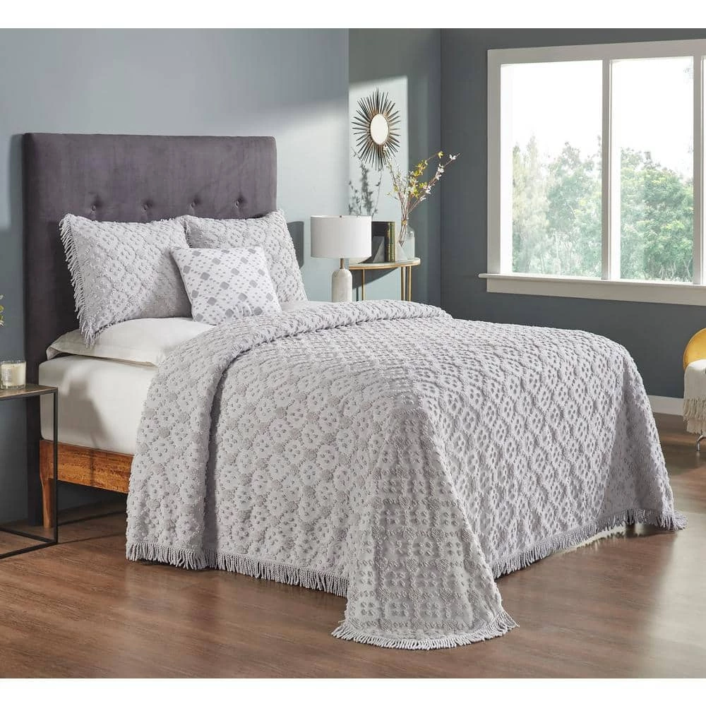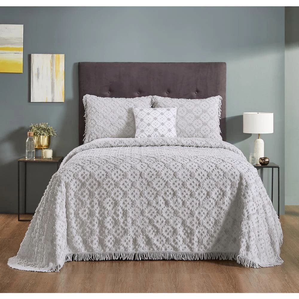 - King set includes: 1-bedspread 120 in. x 110 in., 2-king shams 20 in. x 36 in., 1-decorative pillow 18 in. x 18 in.