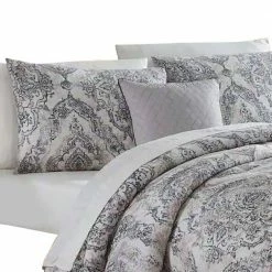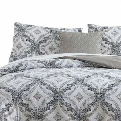 Owen 8- Piece White and Gray Quatrefoil Print Microfiber Queen Bed Comforter Set by Benjara