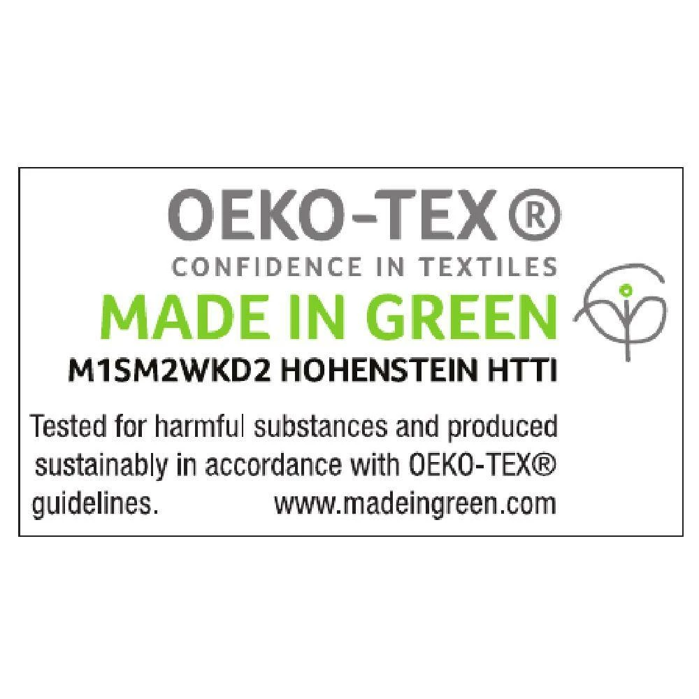 - MADE IN GREEN by OEKO-TEX [M1SM2WKD2 Hohenstein HTTI] is a label you can trust, this label verifies this product was made using materials tested for harmful substances and manufactured in facilities that have safe and socially responsible work practices.