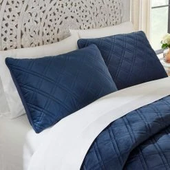 Decorate your bedroom in minimalist fashion with this 3-piece king size oversized quilt set, made of high quality microfiber with machine quilted starfish, sand dollars, conch shells, and rope designs with scalloped trim for an understated look. It is filled with cotton and polyester for a soft and smooth texture and is safe to toss in the washing machine for effortless upkeep on this comfortable companion to your bed. Check out our Esen collection for more sizes.
