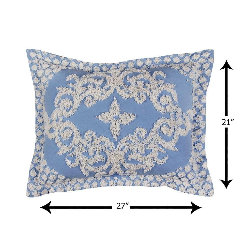 Freshen up your bedroom interiors with the enchanting style of Florence Collection of bedspread. Featuring a beautiful tufted medallion design in two tones, with different color of base fabric and chenille tufted with ivory color. It is ideal to use as a layering piece or an alternative to your comforter for a new solid appeal. This cotton chenille tufted bedspread at Better Trends is soft and plush and offers immense comfort that you desire. Its medallion motif can complement easily your existing decor and will sure to add a new decorative element to your bedroom. This stunning Florence Collection is made of 100% Cotton Chenille and is tufted into a Medallion Design. The bedspread comes all the way down to the floor with button bell corners. Florence collection of bedspreads is available in 3 colors and 4 sizes. Matching shams are available in 3 colors and are sold separately. Also available as 2-Piece and 3-Piece sets.