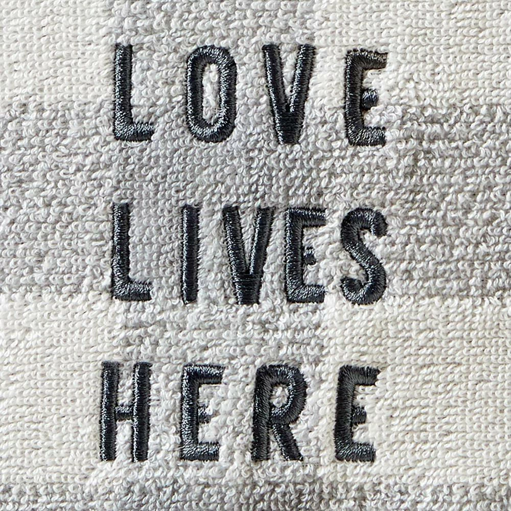 Spread extra love through your home. This soft terry towel set features a checkered jacquard pattern with “LOVE LIVES HERE” embroidery. Use these towels in the bath or kitchen or give them as a housewarming or hostess gift. Shop coordinating towels to complete the look. SKL Home by Saturday Knight Ltd. brings personality, fun and flair to the most intimate spaces in your home with products ranging from bath accessories and shower curtains, to towels, curtains and beyond. Whether your style is upbeat and modern, or classic and cozy, SKL Home provides a look to compliment almost any decor. Combining 40, years’ experience, global design inspiration and premium fabrications, SKL Home continues to lead the way in home accessories.