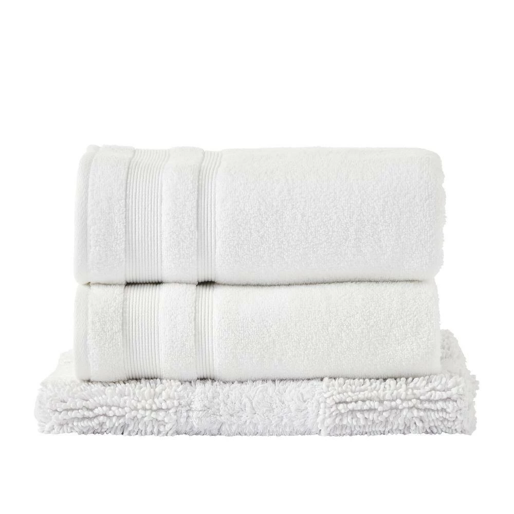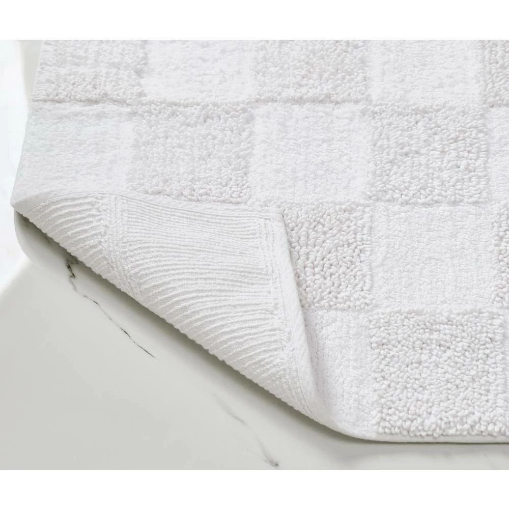 Lydia Collection of Bath Mat and Towel set is a great combination of white colored Bath Mat and Towels, it can easily match with any type of Bathroom, and has made of 100% Cotton which makes it Strong and Good absorption Rug and Towels. This set is super soft and feels really cozy. This set comes with 1 Bath Mat of 20 in. x 30 in. Size and 2 Towels of 27 in. x 54 in. Size. This Set has classic Square check pattern to compliment your Bathroom.