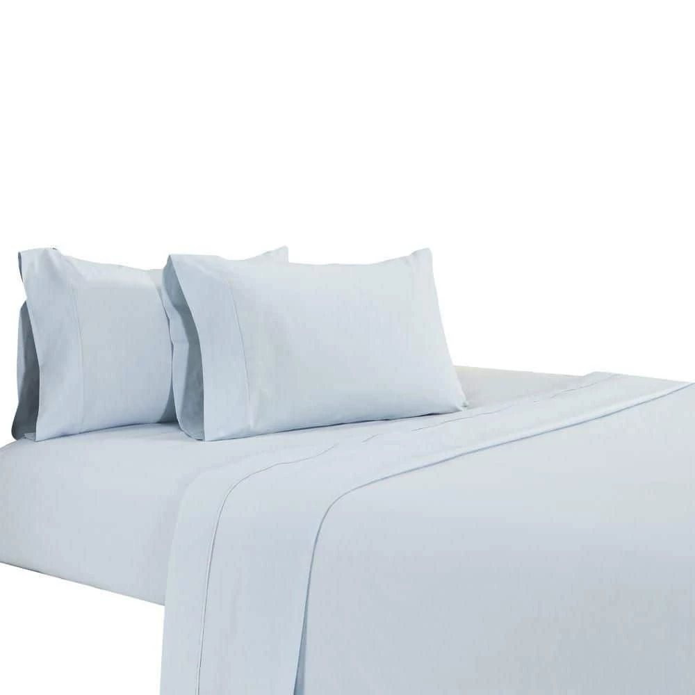 Elegance meets subtle contemporary modern style with this four piece California king sheet and pillowcase set from our best selling Matt collection. Crafted completely from ultra soft and moisture wicking organic cotton fabric in light blue. The set is ultra lightweight, durable, and perfect for any season of the year.