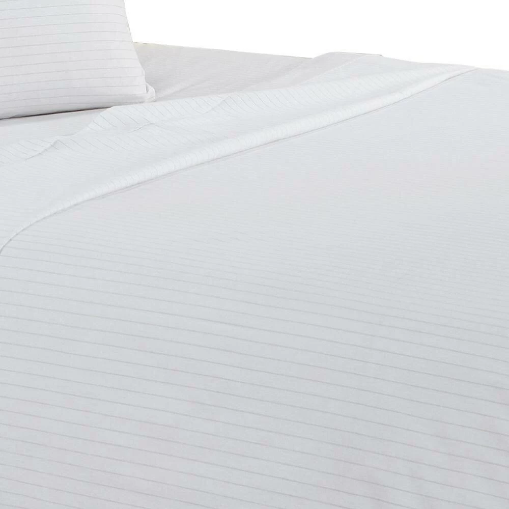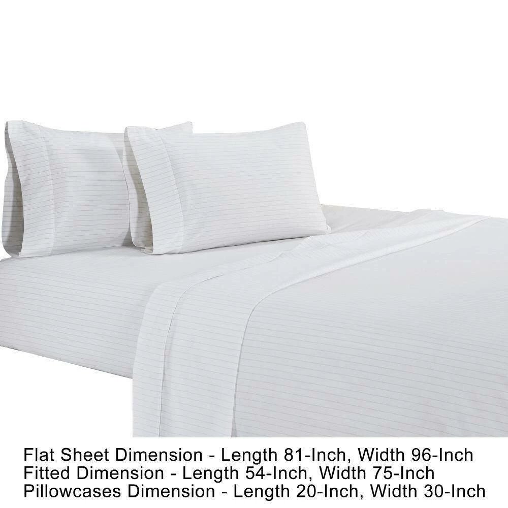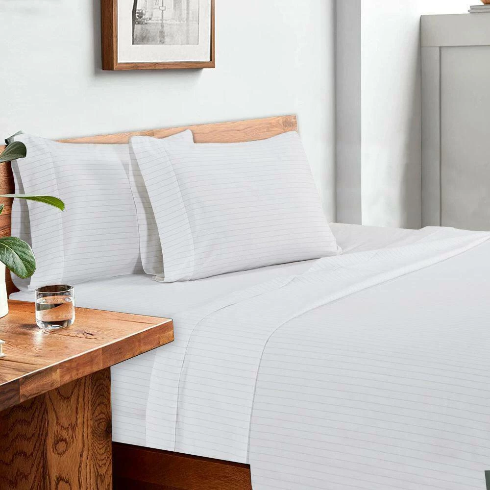 Elegance meets subtle contemporary modern style with this four piece full sheet and pillowcase set from our best selling Matt collection. Crafted completely from ultra soft and moisture wicking organic striped cotton fabric in white. The set is ultra lightweight, durable, and perfect for any season of the year.