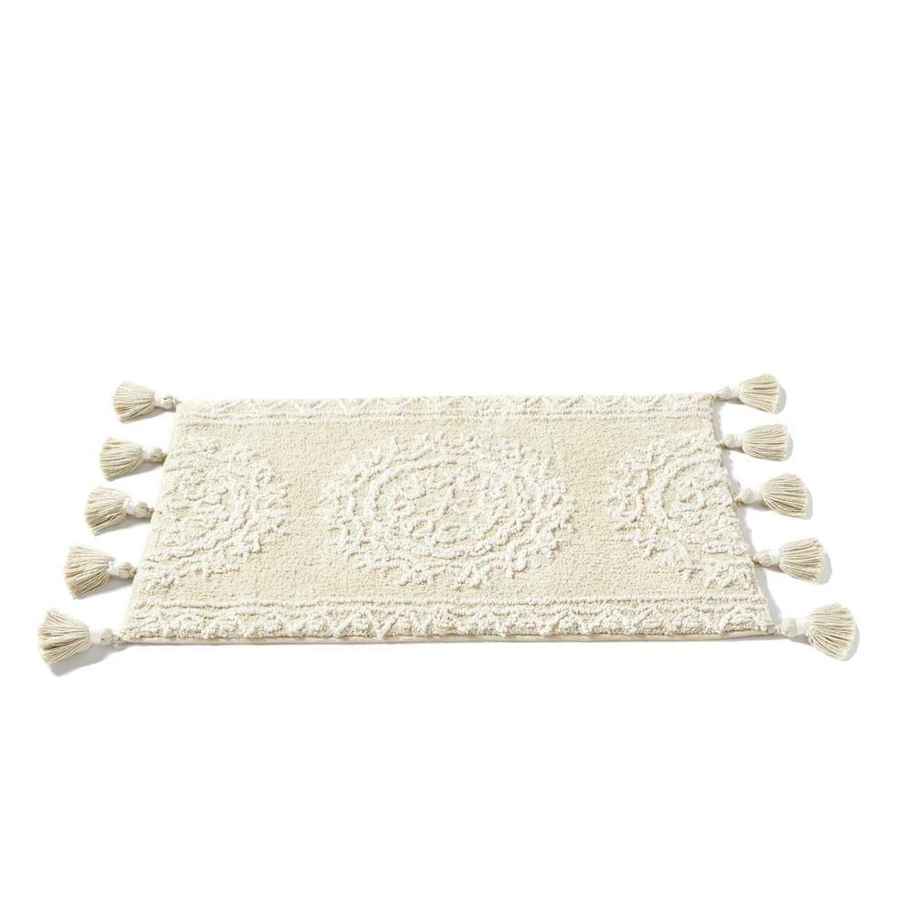 Soft to the touch and visually appealing, you will love the Medallia rug. The plush cotton pile features a 2-tonemedallion design and fun, tasseled trim. This design is crafted in multiple sizes and shapes to fit your unique spaceperfectly. Dimensions do not include tassels; tassel measure 3.5″ in length.