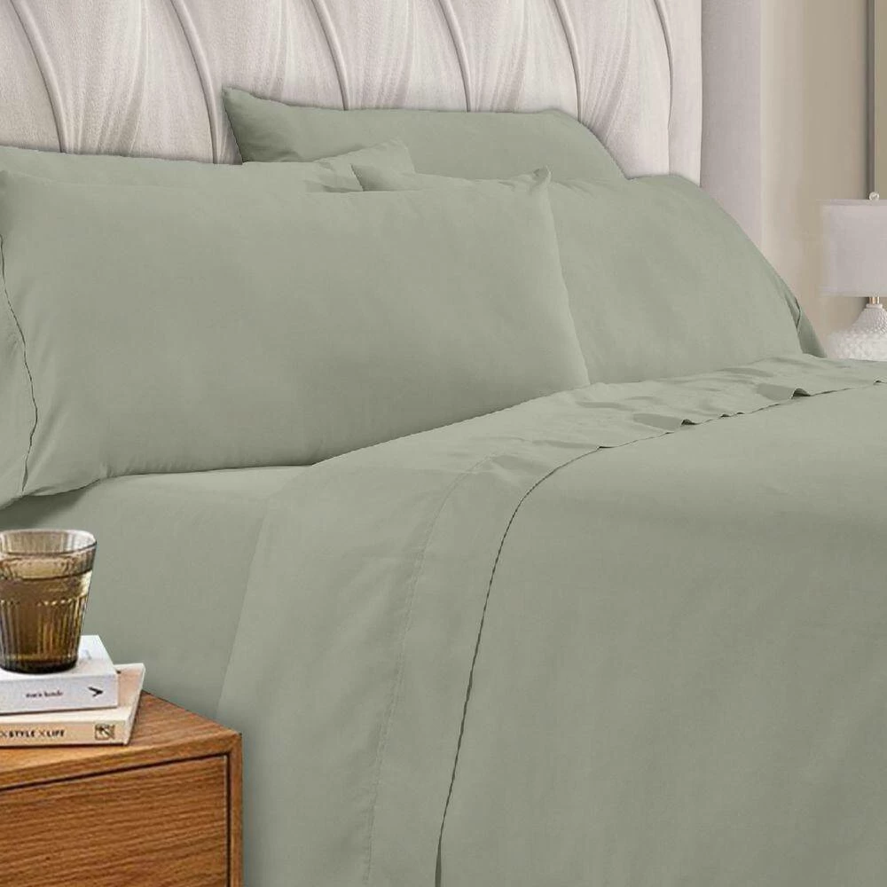 Ultra soft and supremely comfortable, this 6-piece full size sheet and pillowcase set in sage green from our best selling Minka collection is finished with an antimicrobial treatment to ensure a hygienic and comfortable sleep. Featuring extremely fine threads and brushed yarn for a soft fabric texture. This microfiber fabric set is cozy, wrinkle free, and durable.