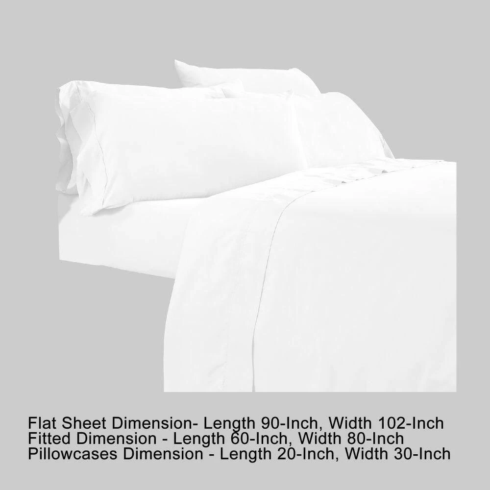 - Flat sheet: 102 in. L x 90 in. W, fitted sheet: 80 in. L x 60 in. W, pillowcases: 30 in. W x 20 in. H