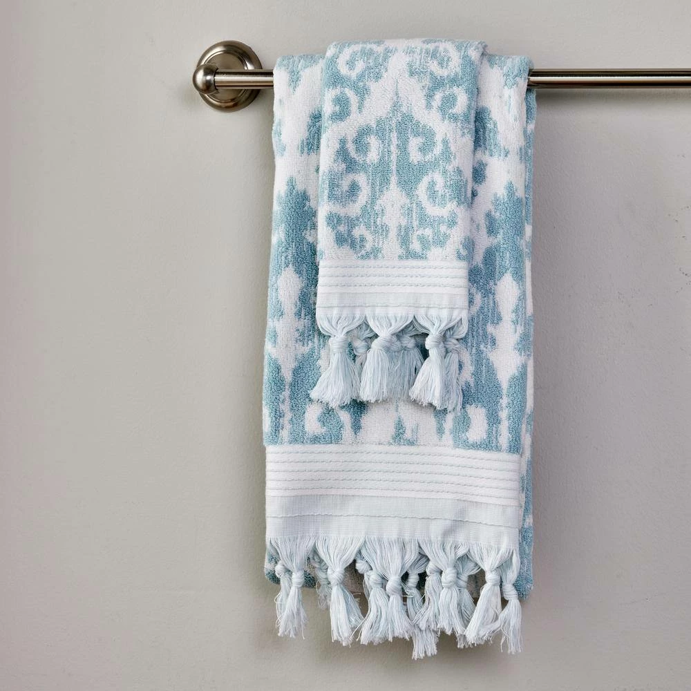 The unsurpassed style of the Mirage Fringe hand towel will add luxury to your bathroom. The reversible, yarn dyed towel with woven jacquard medallion design is highlighted with a striped end hem and hand knotted fringe. Beautiful enough for guests but sturdy enough for every day use, the Mirage Fringe bath towel will be a delight in any bathroom.
