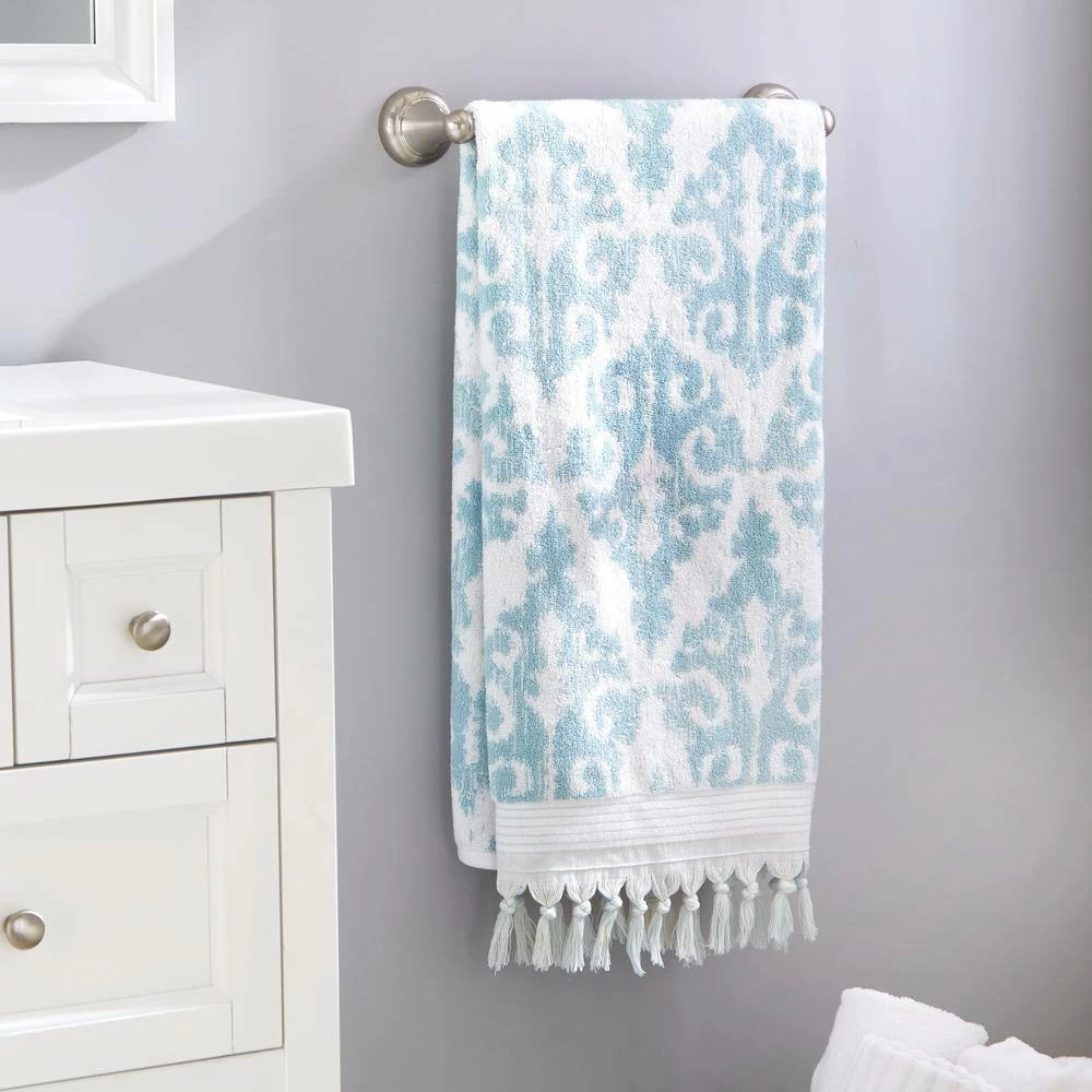 The unsurpassed style of the Mirage Fringe bath towel will add luxury to your bathroom. The reversible, yarn dyed towel with woven jacquard medallion design is highlighted with a striped end hem and hand knotted fringe. Beautiful enough for guests but sturdy enough for every day use, the Mirage Fringe bath towel will be a delight in any bathroom.