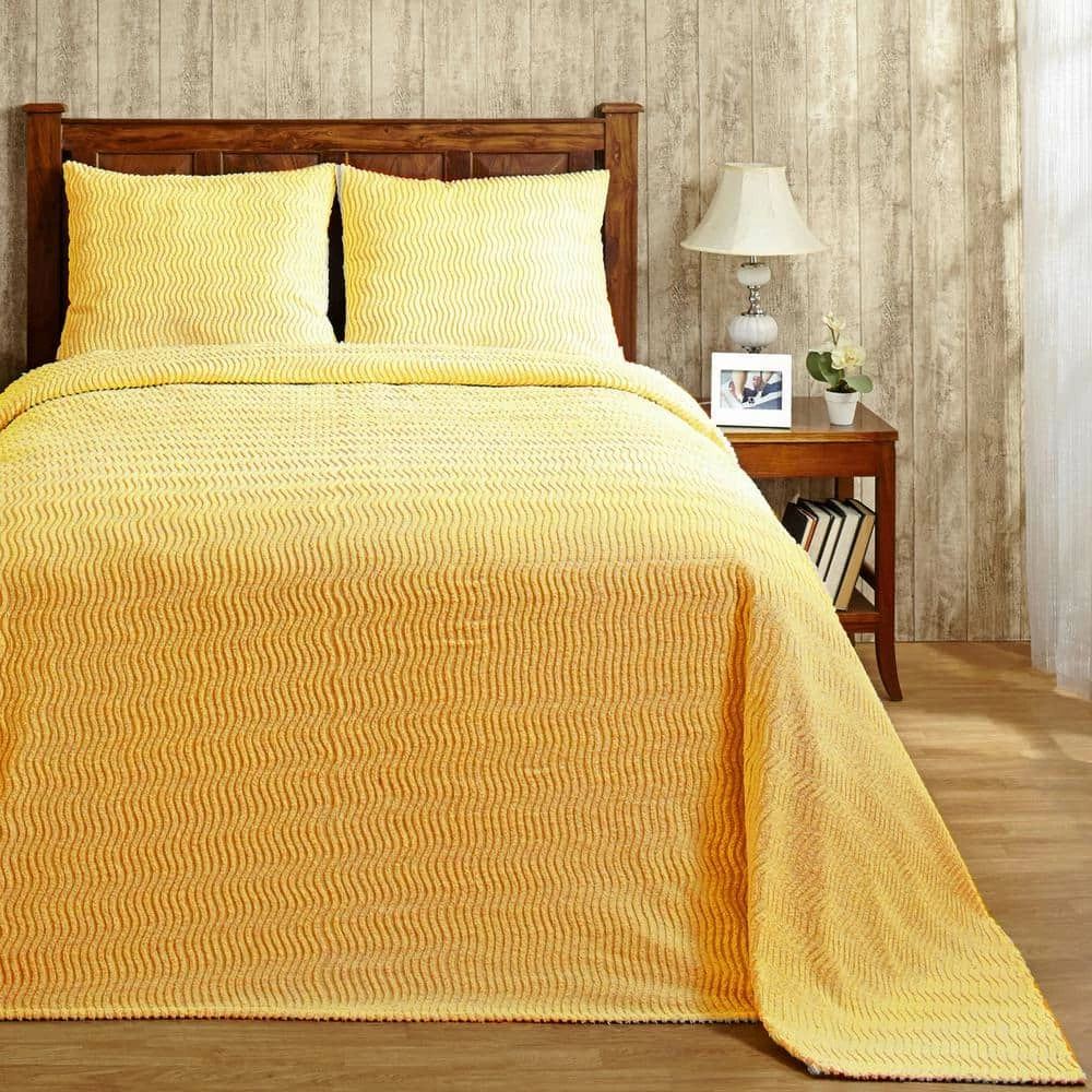 Freshen up your bedroom interiors with the enchanting style of this Natick Collection of bedspread. Featuring a beautiful tufted waverly design in warm tones, it is ideal to use as a layering piece or an alternative to your comforter for a new solid appeal. This cotton chenille tufted bedspread at Better Trends is soft and plush and offers immense comfort that you desire. Its waves motif can complement easily to your existing decor and will sure to add a new decorative element to your bedroom. This stunning Natick Collection is made of 100% Cotton Chenille and is tufted into a waverly Design. The bedspread comes all the way down to the floor with button bell corners. This collection of bedspreads is available in 6 colors and 4 sizes. Matching shams are available in 6 colors and 3 sizes and are sold separately, also available as 2-Piece and 3-Piece sets.
