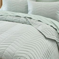 3-Piece Lake Blue Floral Tonal Block Print Cotton Full/Queen Quilt Set by Home Decorators Collection
