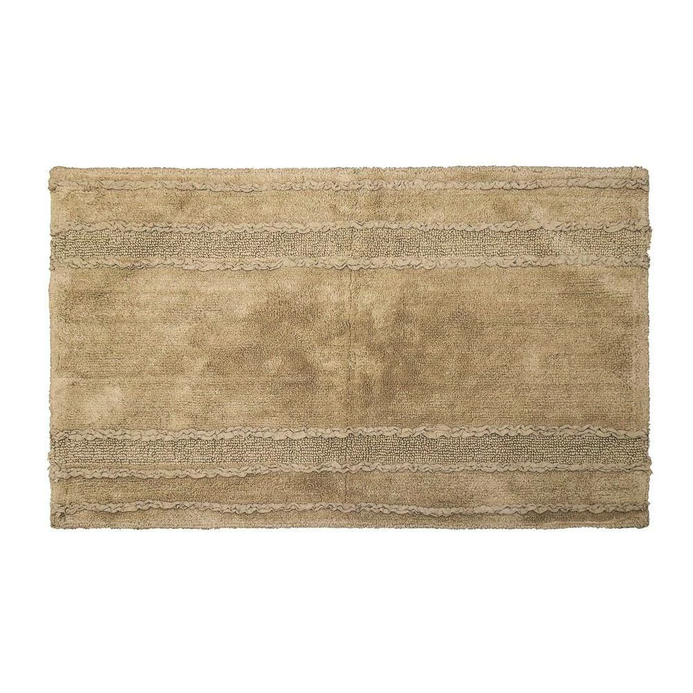 Give your feet a warm and cozy comfort after you step out of the shower or bath with this Ruffle Collection of bath rug. The stylish Ruffle rugs for the bathroom come in a wide range of sizes and colors for you to choose from. Ruffle Border Collection of bath rug is conveniently machine washable for easy care and impressive longevity in your home. Manufactured using premium quality Cotton Yarn, it is highly absorbent and makes your bathroom floors dry quick. Ruffle Border collection of bath rugs are made of 100% soft Cotton. They are comfortable stylish and absorbent – ideal for outside the bathtub shower spa or near the sink. They are also great in the kitchen or at a doorway. It has a intrigue over stich of stripe with ruffle fabric. Ruffle Border Collection are available in 3 colors and 3 Sizes.