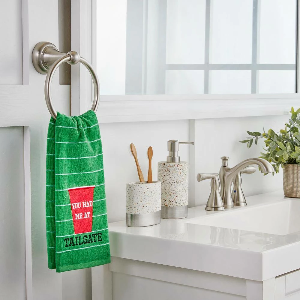 Add extra fun to football season with this 2-piece hand towel set. Featured in soft velour, each towel features “You Had Me At Tailgate” embroidered on front. Shop coordinating football towels to complete the collection; sold separately. SKL Home by Saturday Knight Ltd. brings personality, fun and flair to the most intimate spaces in your home with products ranging from bath accessories and shower curtains, to towels, curtains and beyond. Whether your style is upbeat and modern or classic and cozy, SKL Home provides a look to compliment almost any decor. Combining 40+ years’ experience, global design inspiration and premium fabrications, SKL Home continues to lead the way in home accessories.