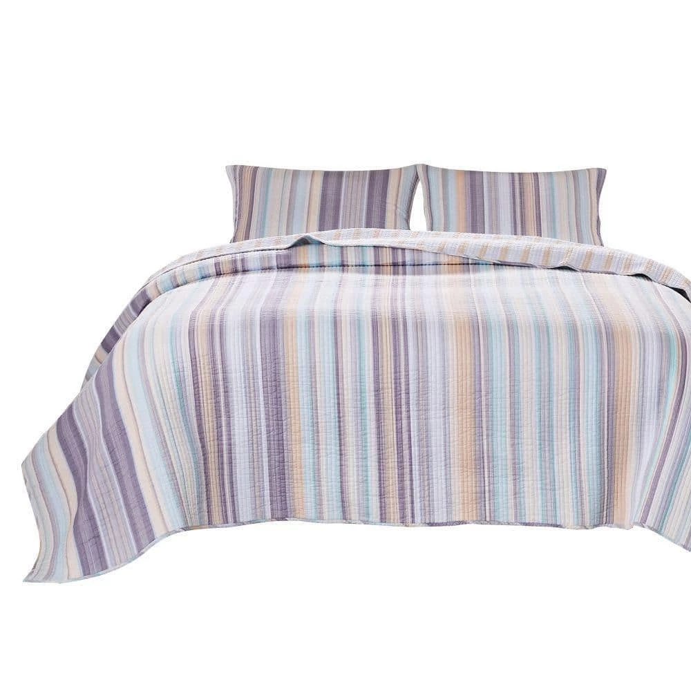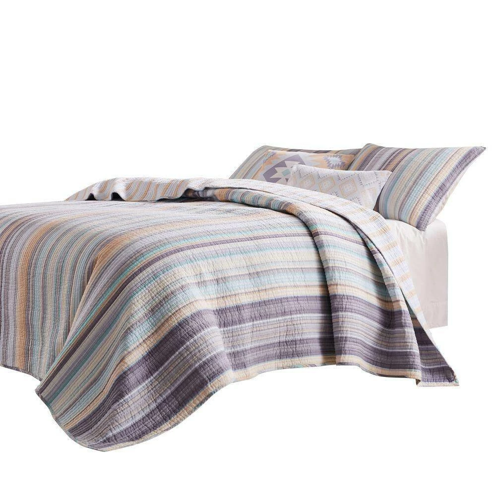 Subtle, classy and currently trending, this 2-piece oversized twin quilt set makes a perfect fit for your kids or guest bedroom. Crafted from an ultra soft cotton fabric, it depicts a striped pastel pattern in the shades of turquoise, tan, charcoal, blue, ivory and white. Featuring a pillow sham, the set is machine quilted for lasting use. Check out our Ysa collection for more options.